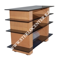 Габариты, см (В*Ш*Г) 53*100*40 Нагрузка на верхнюю полку 100 кг Толщина полок 8 мм.Высота между полками, см (сверху/вниз) 10/15/15/7,5. Углы полок безопасные закругленные. Материал стоек металл. Материал и цвет полок стекло закаленное бесцветное . Задняя панель МДФ с отверстиями под провода. Количество полок 4.